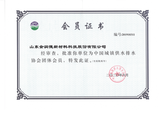 近日,中國城鎮供水排水協會為久潤利華頒發會員證書,久潤利華正式成為中國城鎮供水排水協會團體單位成員。